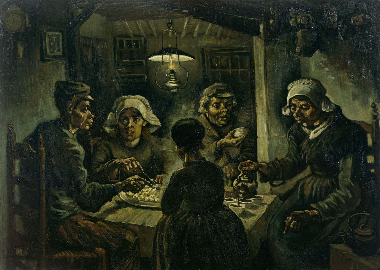 Винсент Ван Гог «Едоки картофеля», 1885 Музей Винсента Ван Гога, Амстердам, Нидерланды Постимпрессионизм Картина «Едоки картофеля» является одним из самых известных произведений Ван Гога. Эта была первая крупная работа художника — работу над полотном он начал в 1885 году. Сам автор чрезмерно гордился «Едоками картофеля» и считал картину своим первым шедевром. На полотне изображена семья… Подробнее »