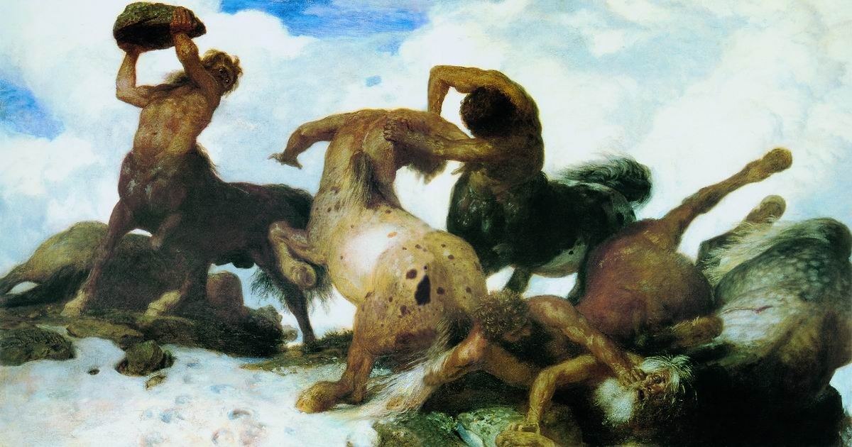 Арнольд «Битва кентавров», 1873 Это полотно передает скорее общее ощущение ужаса, чем реальные подробности происходящего Героические фигуры кентавров в резких поворотах доминируют над вневременным пейзажем. Мучительные позы кентавров, их искаженные лица создают напряжение композиции, а глубокие насыщенные тона передают драматическую остроту сцены и накал страстей. Как художник Бёклин сформировался в Италии. Эта страна вдохновила его… Подробнее »
