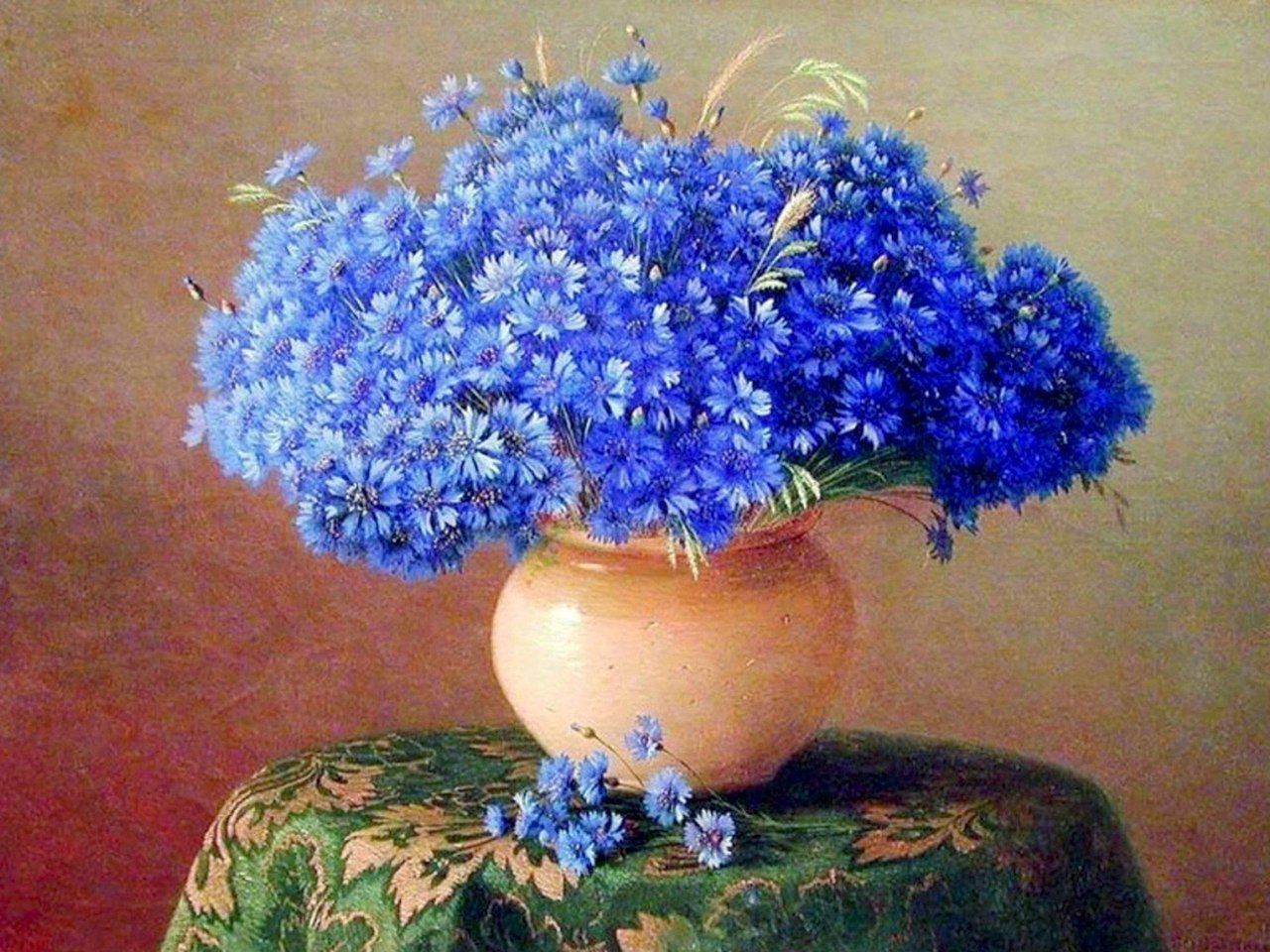 Гавриил Павлович Кондратенко «Натюрморт с васильками», 1900-е Частная коллекция Романтизм, натюрморт В обычной глиняной посуде Небесное мы видим чудо — Здесь с ярко-синими крылами Уселись бабочки пред нами, Так плотно стебли облепили… Постой, да то не васильки ли?! Привет от солнечного лета — Простая вазочка с букетом. Но столько в нем тепла таится, Что сразу… Подробнее »