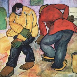 Казимир Малевич «Полотеры», 1912 Городской музей, Амстердам Кубизм Работа полотеров напоминает яростный танец. Сравните эту картину со знаменитым «Танцем» Матисса, чтобы убедиться в том, насколько очаровало Малевича тогда творчество фовистов. Лицо полотера изображено максимально условно — в традициях примитива (два стилизованных глаза, искаженная черточка носа). Малевич не стремится к анатомической похожести, ему важно лишь показать… Подробнее »