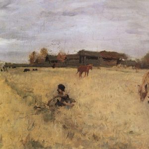 Валентин Александрович Серов «Октябрь. Домотканово», 1895 Третьяковская галерея, Москва Импрессионизм Пейзажи Серова всегда особенны. Используя все средства импрессионизма, художник достоверно передает впечатление от яркого октябрьского дня. Крестьянские лошади разбрелись по выгоревшему осеннему полю. Маленький босоногий пастушок чинит свой хлыст, который истрепался за лето. Черные овцы, напуганные белым конем, тревожно сбились в дальнем углу поля. Яркие… Подробнее »
